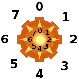 Um einen Laserwerfer zu verwenden, muss der Roboter auf dem gleichen Feld stehen. Der Laserstrahl leuchtet alle Bäume an, die in der eingestellten Richtung liegen. Die Richtung wird durch eine ganze Zahl von 0 bis 7 vorgegeben. Ein Laserwerfer kann mehrfach ausgerichtet werden.
