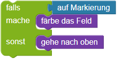 Wenn der Roboter auf einer Markierung steht, dann wird die Funktion bemale() augerufen. Wenn der Roboter nicht auf einer Markierung steht, dann passiert nichts.