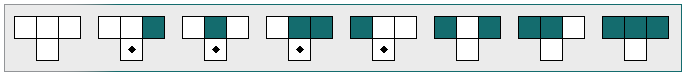 Zum Beispiel bedeutet die erste Regel (von links): Ein Feld ist nicht markiert, wenn alle drei Felder oberhalb nicht gefärbt sind.