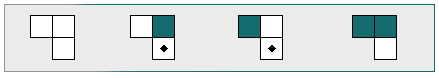 Die zweite Regel bedeutet: Ein Feld ist markiert, wenn von den drei Feldern oberhalb nur das Feld rechts oben gefärbt ist.